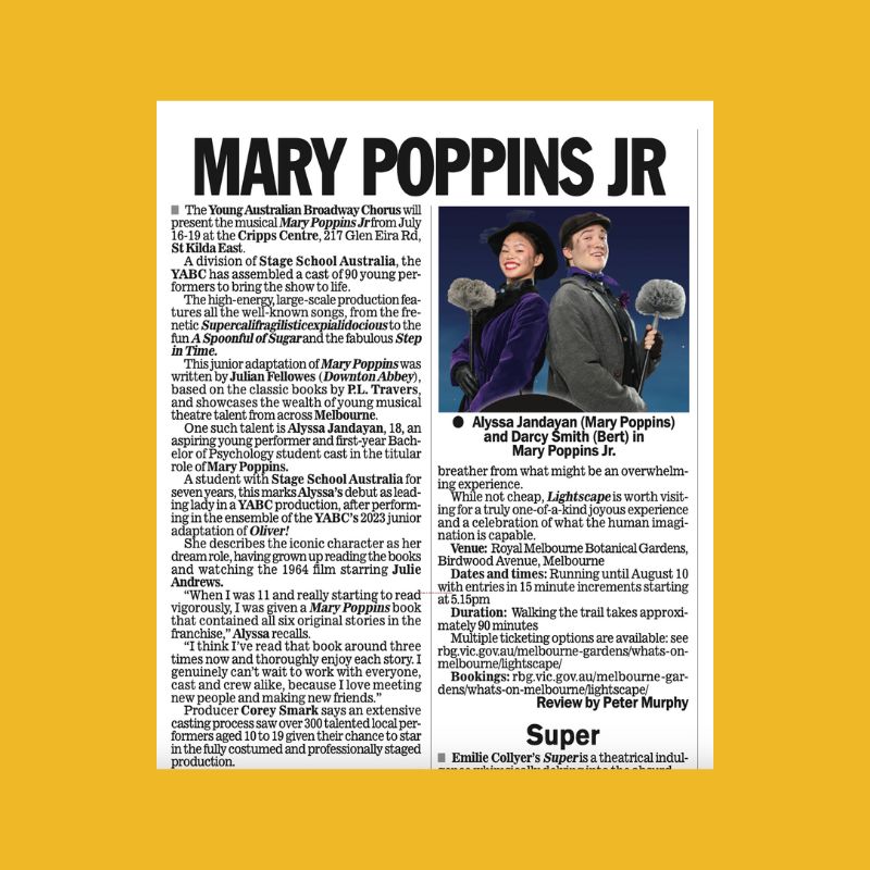Stage School Australia engaged Aruga to deliver a publicity campaign for its Melbourne mainstage production, Mary Poppins Jr – the heart-warming junior adaptation of Disney’s beloved musical.